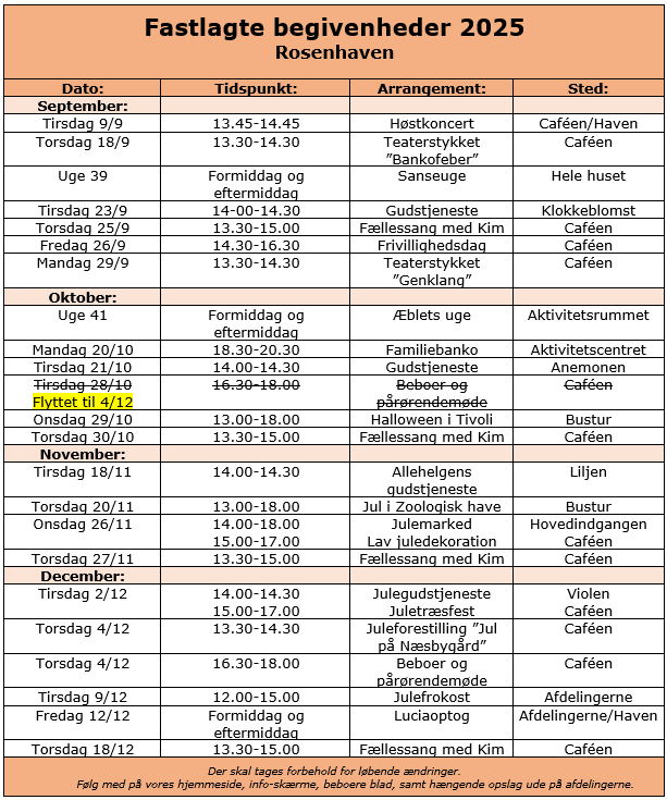 Rosenhaven tilbyder mange forskellige aktiviteter og arrangementer, som du kan se i vores månedsplan og begivenhedskalender.